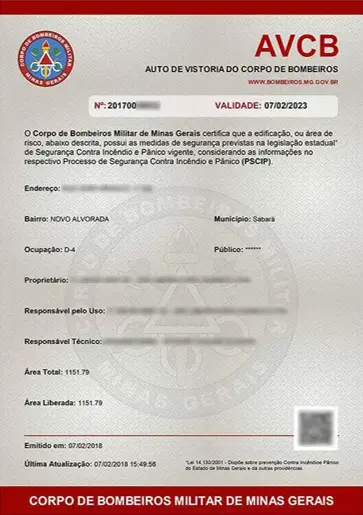 A validade do AVCB varia de estado para estado, conforme legislação específica, a depender de fatores como o risco da atividade e número de pessoas circulantes nas edificações. O AVCB permanente para o estado de Minas Gerais possui validade de 05 anos.